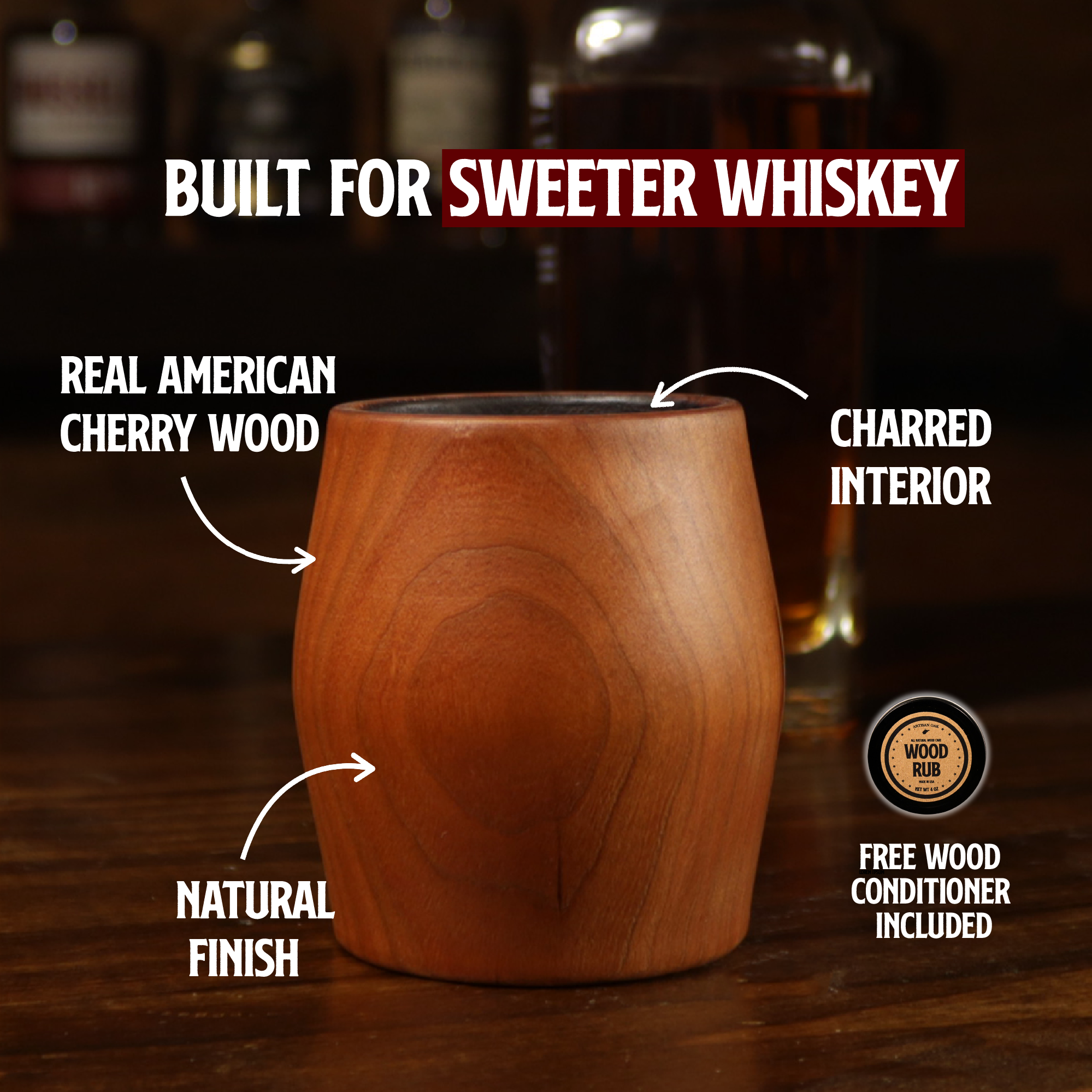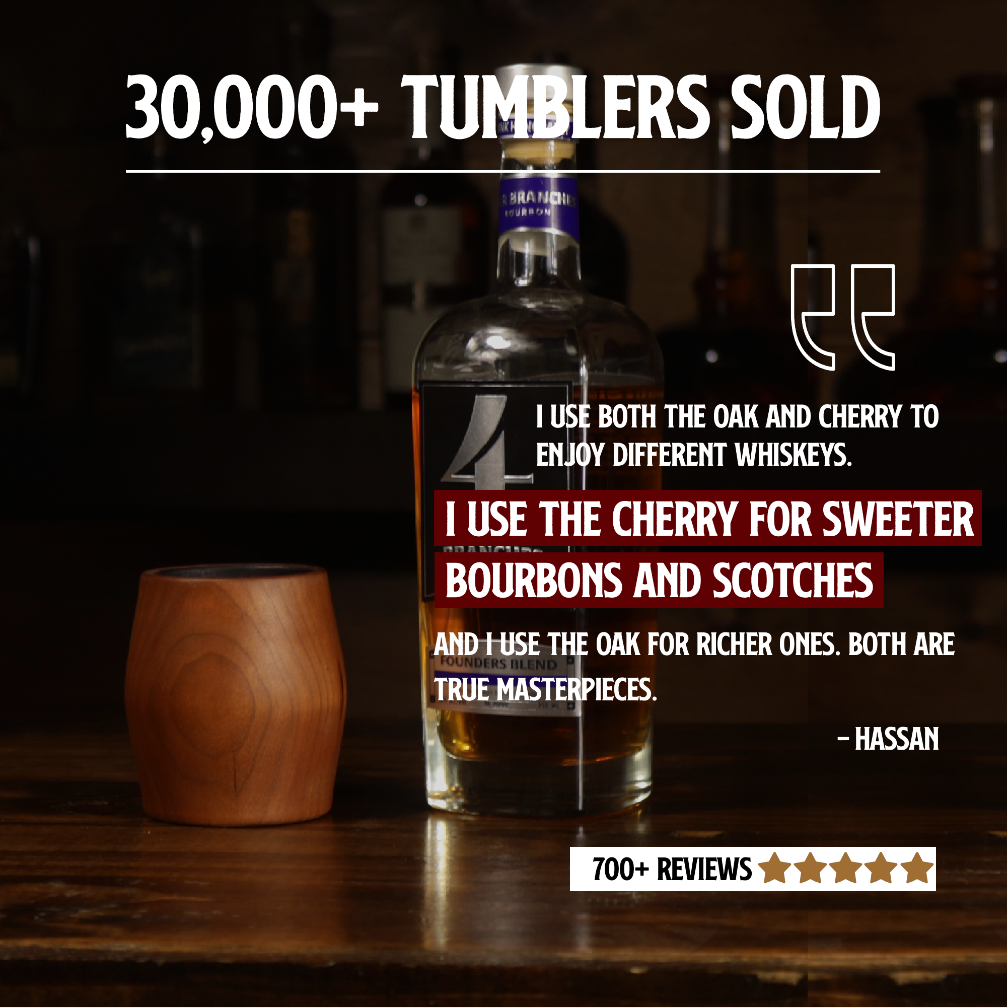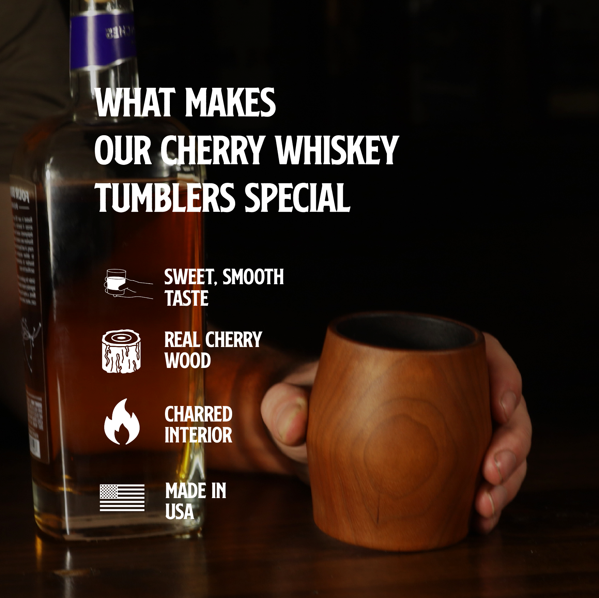 Experience whiskey in a new way with our Cherry Whiskey Tumblers, crafted from premium cherry wood and carefully charred to enhance flavor. Each tumbler mirrors the traditional bourbon barrel process, enriching your drink with rich and sweet notes.